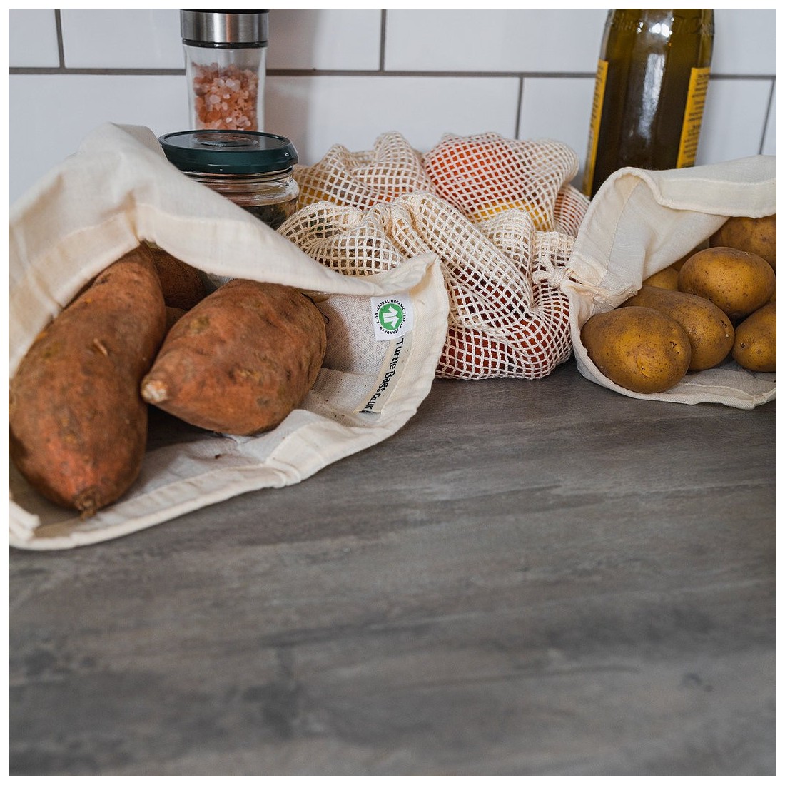 Es lavable y reutilizable, lo que te permite la satisfacción de evitar las bolsas de plástico. Son la alternativa sostenible a las bolsas de plástico. Fáciles de transportar, dobladas o enrolladas, para disponer de ellas en cualquier momento.