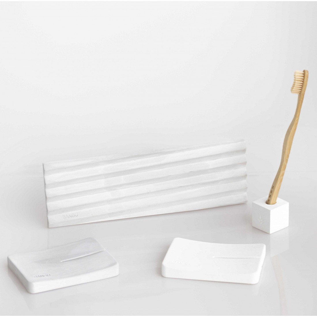 Jabonera fabricada a base de piedra mineral natural. Gracias a la gran capacidad de absorción que ofrece este material, la jabonera mantiene los jabones y cosmética sólida siempre secos.